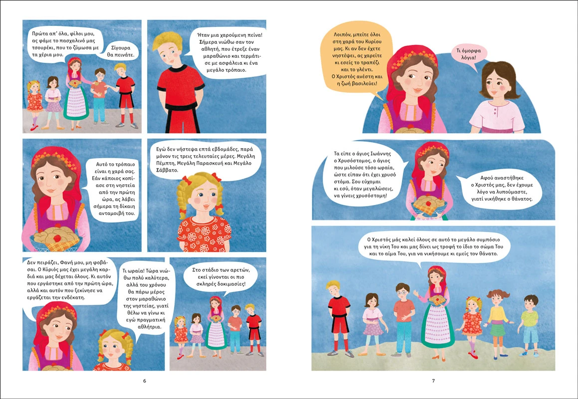 Κάθε εβδομάδα γίνεται μια στάση γεμάτη νόημα. Η Εκκλησία, ως στοργική παιδαγωγός, μας προσκαλεί να γνωρίσουμε βαθύτερα το μυστήριο της Αναστάσεως και τη ζωή της πίστης. Μέσα από ζωντανούς διαλόγους και απλές, κατανοητές εικόνες, τα παιδιά έρχονται σε επαφή με τη θεολογία αυτής της περιόδου με τρόπο προσιτό και χαρούμενο.